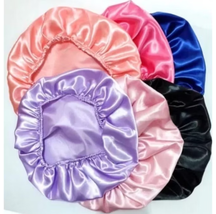 A touca de cetim é um acessório para cabelos que visa proteger os fios durante o sono, reduzindo o atrito com o travesseiro e, consequentemente, o frizz, a quebra e o ressecamento.